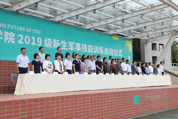 (图一)启动仪式现场 (图二)学校党政领导、部队领导、各分院、职能处室领导出席启动仪式 (图三)启动仪式由学生发展处处长周岚主持 (图四)校党委书记于孟晨教授作军训动员讲话 (图五)校长...