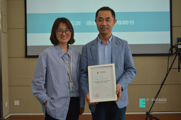 (图四)殷颖迪副院长为教学督导组组长岳亚峰颁发聘书