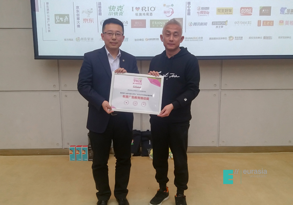 承办单位广告人文化集团市场部代表陈紫雯女士为在场同学们介绍学院奖的奖项设置,讲解参赛策略。随后,为感谢我院一直以来组织大赛的辛苦付出,组委会为文化传媒学院颁发“年度广告教育推动奖”证书,鼓励我院继续努力推动大赛发展。