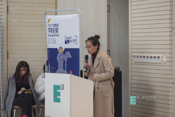主持人文化传媒学院徐海冰老师介绍完嘉宾后,作为此次活动的东道主,我校文化传媒学院院长助理高昱老师致欢迎辞,他表示:“在大数据以及人工智能技术日渐普及的全媒体时代,人们的创新思维变得愈发有价值,而青年大学生群体作为新时代的中坚力量,更是创新、创作的活力源泉。对我们在校大学生和命题企业来说,大广节的举办无疑是一次意义非凡的活动。”