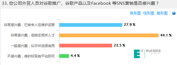 物流贸易学院课程中心有关教师在合作前期,通过调查问卷的形式,对西安近百家跨境进出口企业进行了调查分析,根据数据显示的结果了解了本地跨境企业国际营销过程中的痛点,比如问到企业“在哪些方面做出改进会对出口有明显的积极影响”这一问题时,就有50%得企业选择愿意增加谷歌广告投放预算,当被问到“对谷歌推广、谷歌产品以及Facebook 等SNS营销是否感兴趣?”时,大部分企业选择了非常感兴趣,但缺乏相关人才。