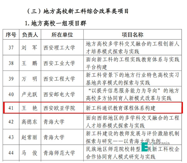 近日,我校 “新工科通识教育课程体系构建”,被国家教育部认定为“国家级新工科研究与实践项目”。我校也是陕西唯一获批立项的民办院校。