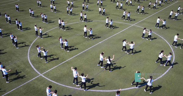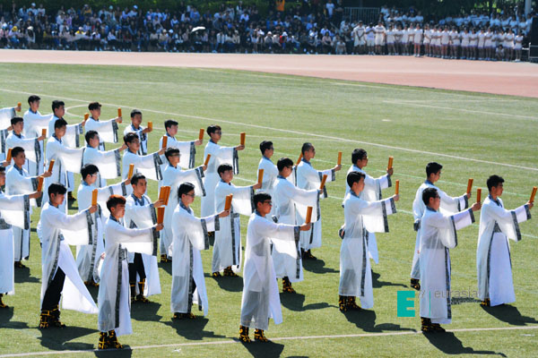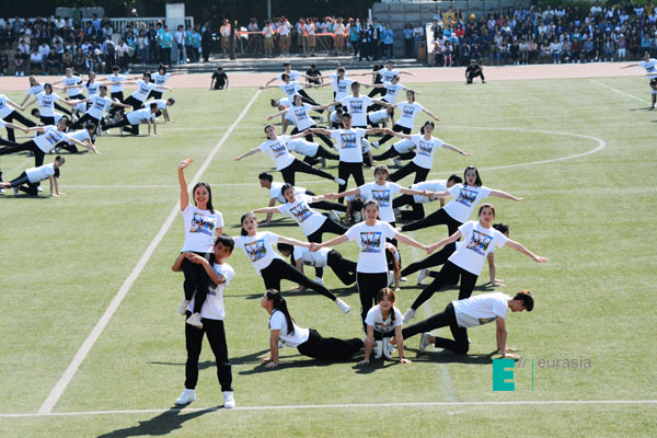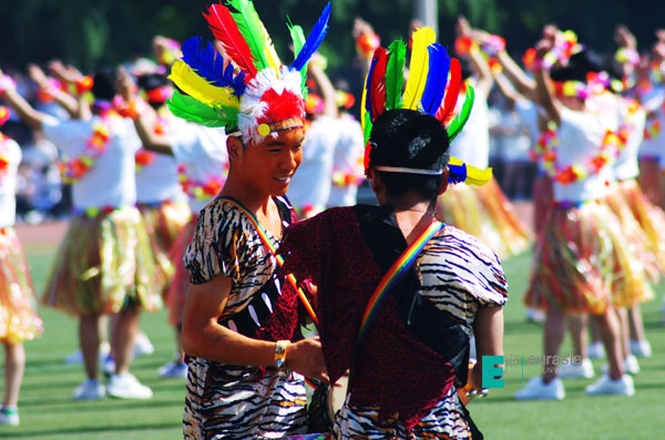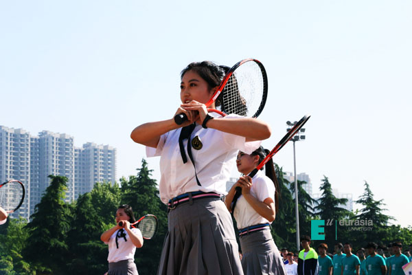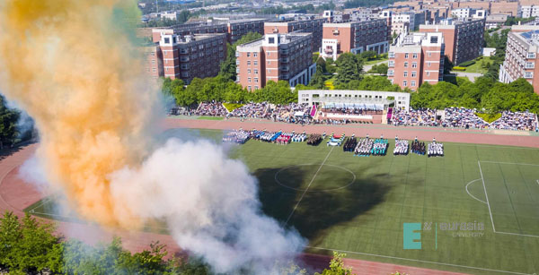 最后为我们带来视觉盛宴的是各个社区精心准备的大型团体操项目,伴随着欢快的节奏,迈着催人奋进的步伐。体育场上的表演方阵以及团体操以其特有的活力与魅力展示了欧亚学子的朝气蓬勃,也淋漓尽致的诠释了学子们的风采。