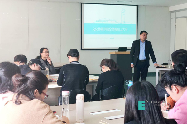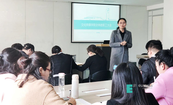 一元复始,万象更新;阳春二月,征途启航。2018年2月28日上午,我校文化传媒学院全体教职工大会在A-402会议室召开,出席会议人员主要有文化传媒学院闫晋瑛副院长、院长助理高昱老师、教学发展中心主任张淑云老师、合作发展中心主任左伟老师、课程中心主任罗丽霞老师、樊荣老师以及其他全体教职工,会上各部门负责人分别就今年分院的各种重点工作事项进行了统筹安排。