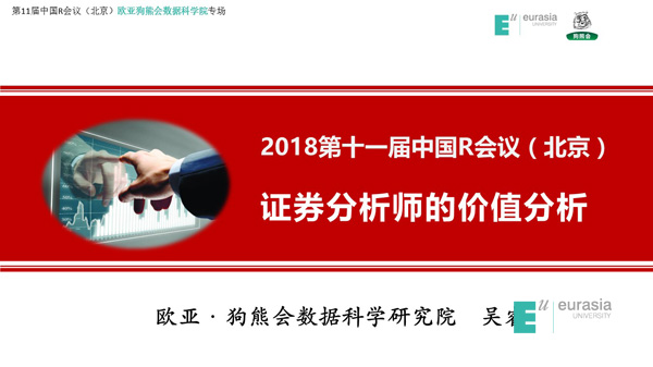 我校教师,西安交通大学在读博士,欧亚•狗熊会数据科学研究院副院长吴睿老师分享题目:《证券分析师的价值分析》。
