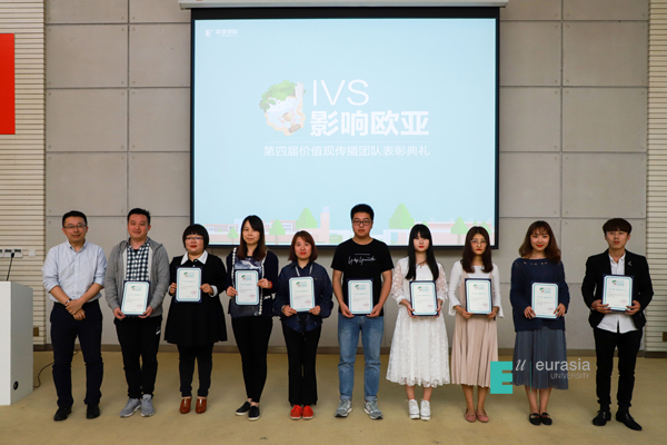 4月17日下午,我校品牌传播部主办的“2018影响欧亚”第四届价值观传播团队表彰典礼在大学生活动中心多功能厅举行,现场表彰了2017年度价值观传播表现突出的团队和个人,参加颁奖典礼的有各二级学院和职能部门的领导、价值观传播团队专员,对欧亚价值观传播作出突出贡献的部分学生代表;同时,还特别邀请到云网创意总监宋涛以及腾讯大秦网教育事业部总监白涛,大家共同探讨、分享了关于欧亚价值观传播的方式、方法及意义。