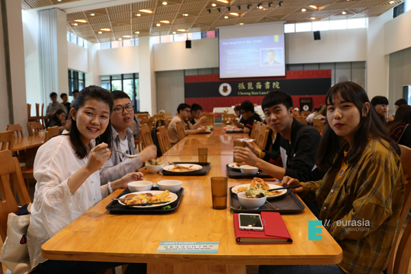 访问期间,欧亚师生访问团住在书院学生宿舍,以方便近距离体验书院生活。张昆仑书院院长余小明博士、副院长黄才试老师及书院导师团队先后向访问团作了专题分享,就学校和书院的历史、理念、构架等进行了介绍。张昆仑书院以培养学生“阳光、诚实、合作、进取”为书院使命,澳大每个书院就像一个小的生活系统,书院内不仅有富有特色而人性化的独立食堂,图书室、讨论室、自习室、会客室、厨房、健身房等学习、休闲、健身设施一应俱全,完善的设施服务有效提升了书院学生的高品质的生活学习体验。