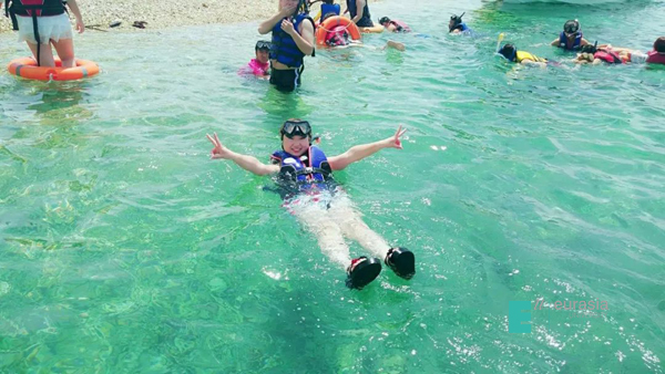 不知不觉中到了游学的第四天,我们来到了美丽的Sabah。今天的行程离不开海,北方的我也未曾见过海,所以海对我而言神秘,美丽又充满着未知。经过许久的跋涉,我们乘坐的船靠岸了,从仓里出来登上甲板。沙滩、珊瑚、摇摆的棕榈树,瞬间清醒的我们欢呼着甩掉拖鞋。海天一线,你能想象的美全都有。