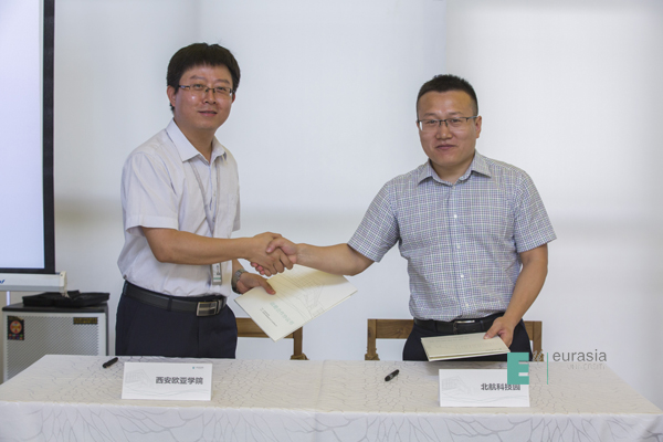 (图二)谢涛院长与北航科技园国家级孵化器负责人冯健先生
