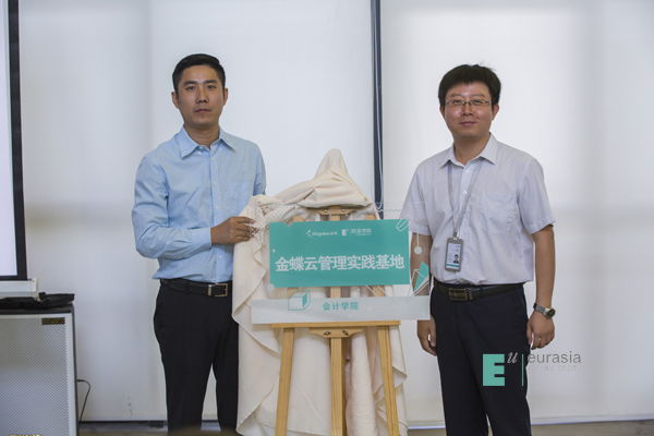 (图五)谢涛院长与金蝶软件(中国)有限公司西安分公司分销总监张宏为“金蝶云管理实践基地”揭牌