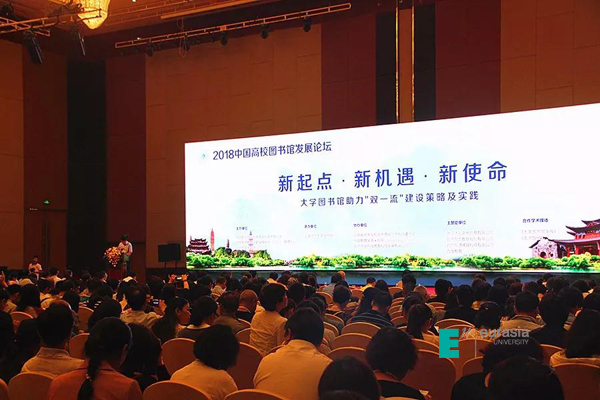6月7日-6月9日“2018中国高校图书馆发展论坛”在云南省昆明市云安国际会议中心盛大开幕。由中国图书馆学会高等学校图书馆分会、中国高等教育文献保障系统(CALIS)管理中心和北京大学图书馆主办,云南师范大学图书馆承办,云南省高等学校图书情报工作指导委员会、中国教育装备采购网、北京中文在线教育科技发展有限公司协办。