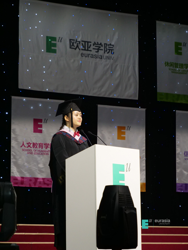 随后,2018届优秀毕业生代表,艾德艺术设计学院王安妮进行了大会发言。