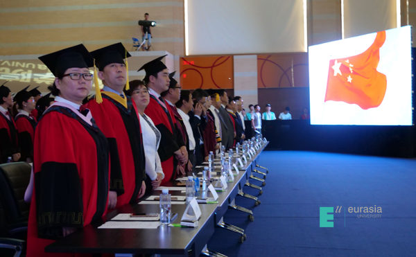 6月24日9点,我校“2018届毕业表彰典礼暨学士学位授予仪式”在体育馆隆重举行。出席本次毕业典礼的有学校党政领导、分院领导、各职能处室领导及教师代表。同时,参加典礼的还有我们的5747名毕业生及其家长代表,校友代表和来自校企合作单位的领导。典礼开始前全场进行传旗仪式,毕业生们用这样一种形式来拥别欧亚。