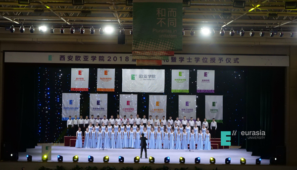 艺术团又领唱了《再见》,情到深处,引发全体师生共同合唱。天下没有不散的筵席,我们送走了一届又一届的毕业生,望他们带着欧亚的DNA,一路顺风。