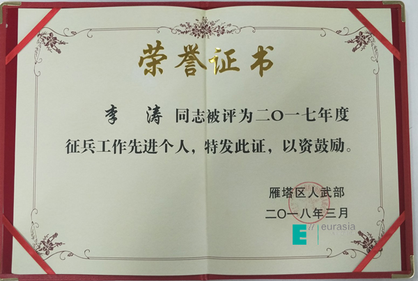 (图四)荣获雁塔区人民武装部2017年度征兵先进单位