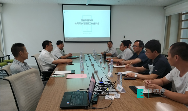 2018年6月24日下午,我校召开教育帮扶清涧县工作座谈会,学校邀请清涧县政府主管教育扶贫工作的副县长韩秀晋、清涧县教育局局长白炜、商贸局局长辛鹏宏等一行7人前来我校座谈交流教育扶贫工作,学校董事长胡建波、党委书记许尚年、工会副主席晏建忠参加了座谈会。