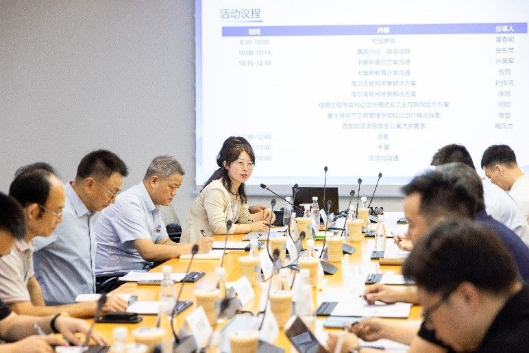 当天下午,校企双方各版块负责人在行政楼一楼东会议室就双方合作内容及方式进行了更进一步的沟通与讨论,双方达成初步合作意向。海尔衣联网总经理孙传滨热情邀约欧亚校领导及相关负责人到访海尔总部及重庆展厅参观。张乐芳副校长表示随后将会组织欧亚团队前往海尔参观学习。