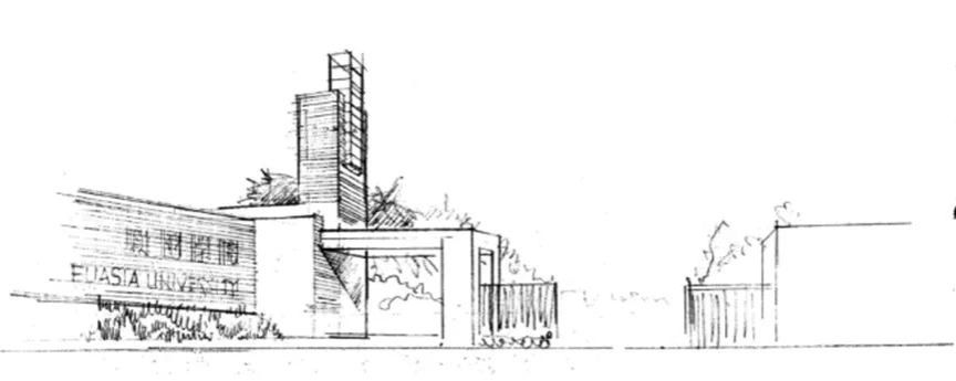 (图九)关先生对清华图书馆四期的构思草图,关注对校园环境的保护、对校园文化的传承。