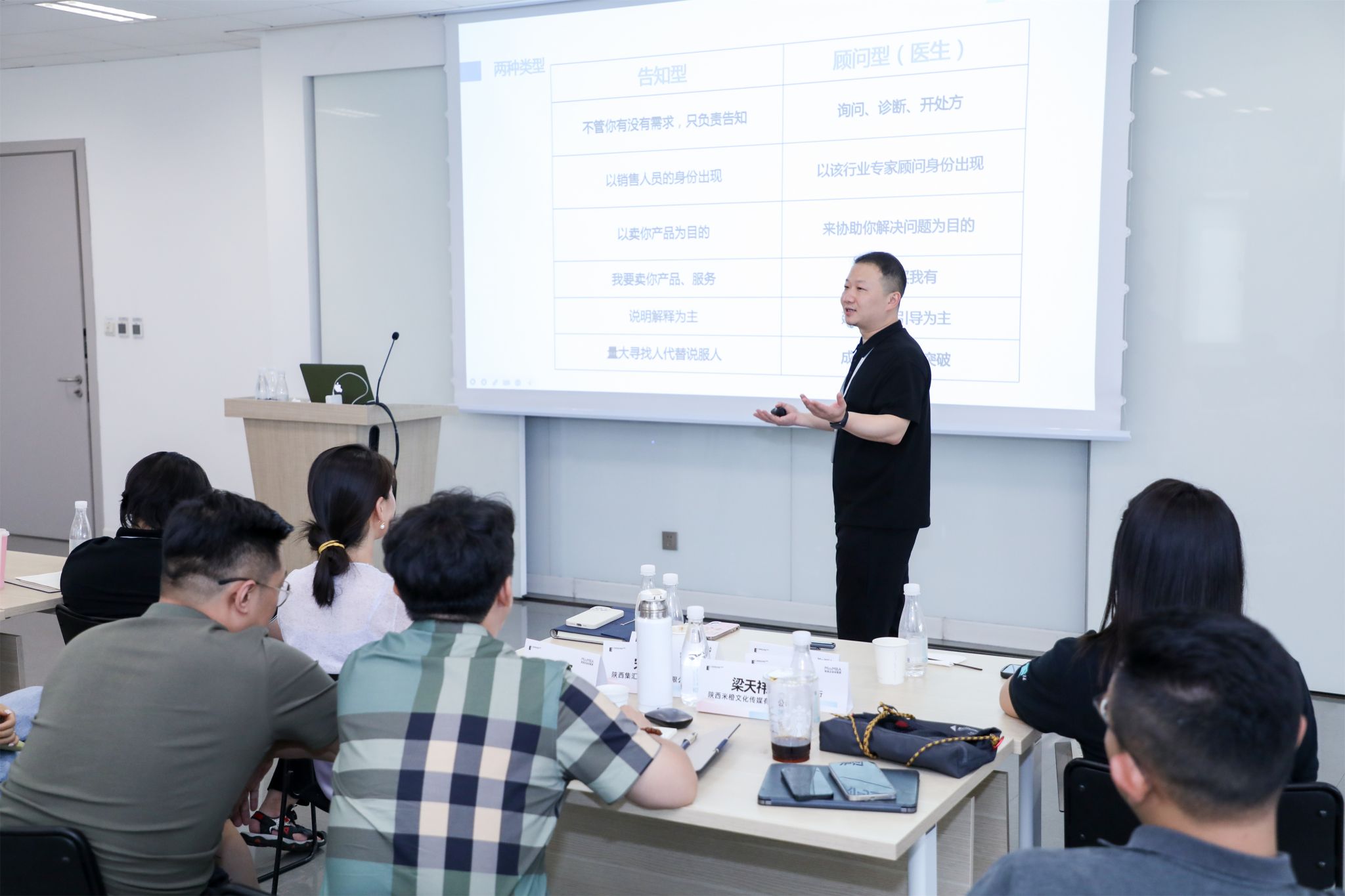 如何为企业带来更高的客户价值与市场份额?8月25日上午,bevictor伟德国际1946官网工商管理学院院长助理陈哲的《顾问式营销技能与方法》课程为学员们打开了新的视野。这种营销方法强调以客户为中心,通过深入了解客户需求和问题,为客户提供专业的解决方案和建议。顾问式营销人员需具备丰富的行业知识和专业技能,能够与客户建立起良好的信任关系。他们善于倾听客户的诉求,运用有效的沟通技巧和分析能力,为客户量身定制个性化的营销方案。而且,顾问式营销不仅关注产品或服务的销售,更注重与客户建立长期的合作关系,通过提供增值服务和持续的价值创造来提升客户满意度和忠诚度,能够帮助企业实现更高的客户价值与市场份额方面的突破。