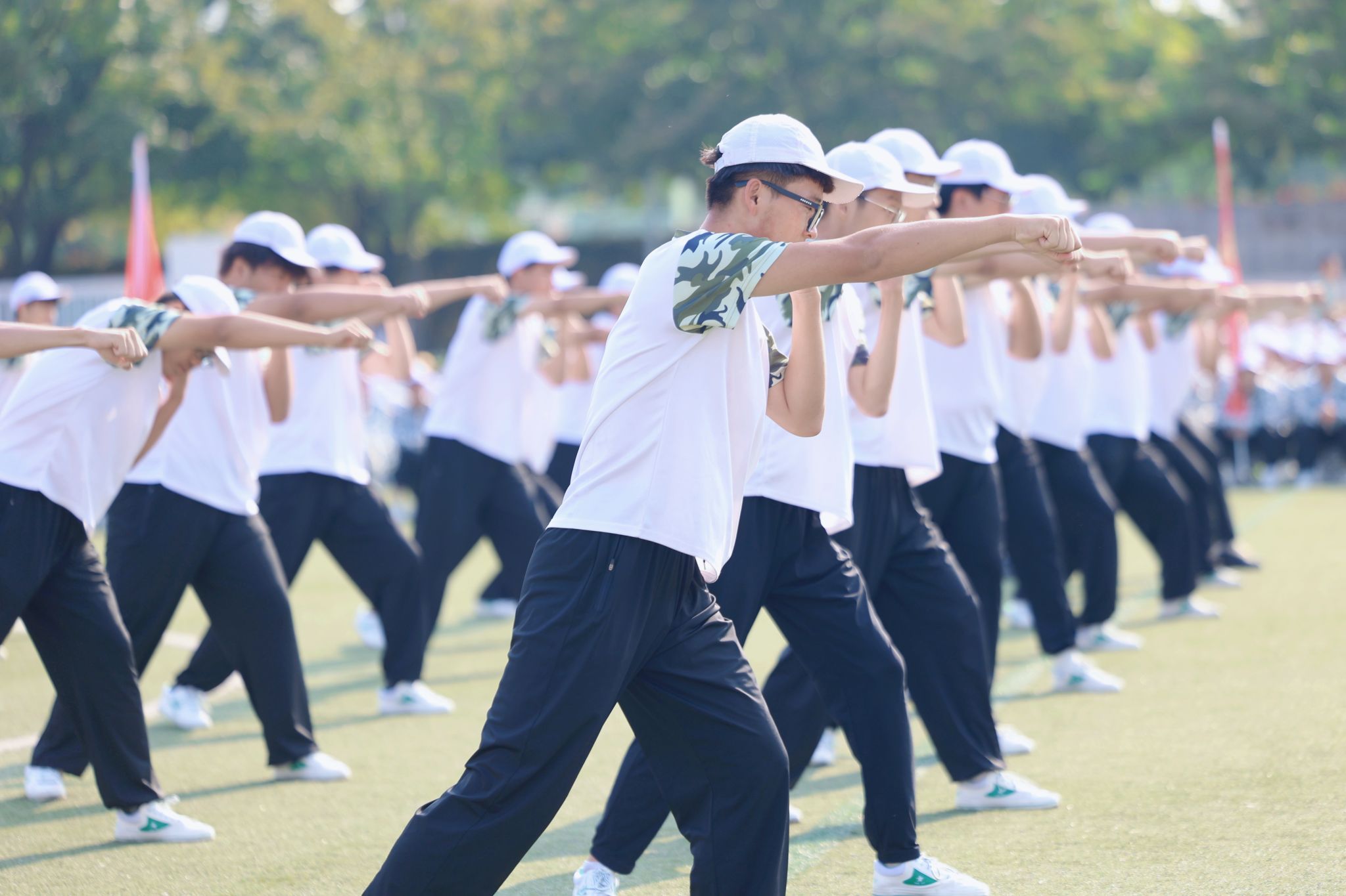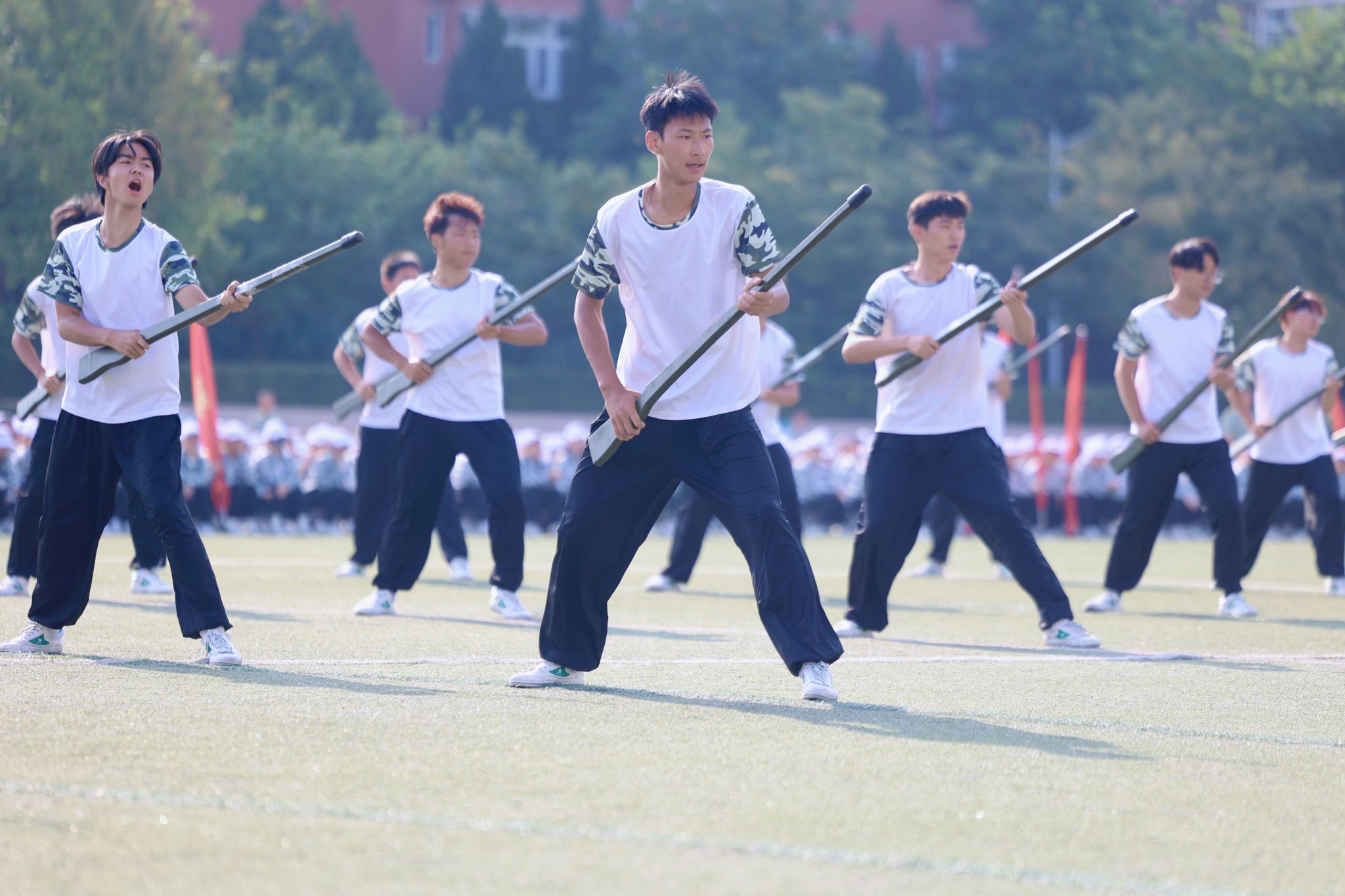 在方阵队列和格斗表演中,同学们动作全神贯注,口号强劲有力。他们专注的姿态,如同雕塑般坚定,嘹亮的口号,如同雷霆般震撼,散发着蓬勃的朝气与活力,让人感受到了青春的力量。
