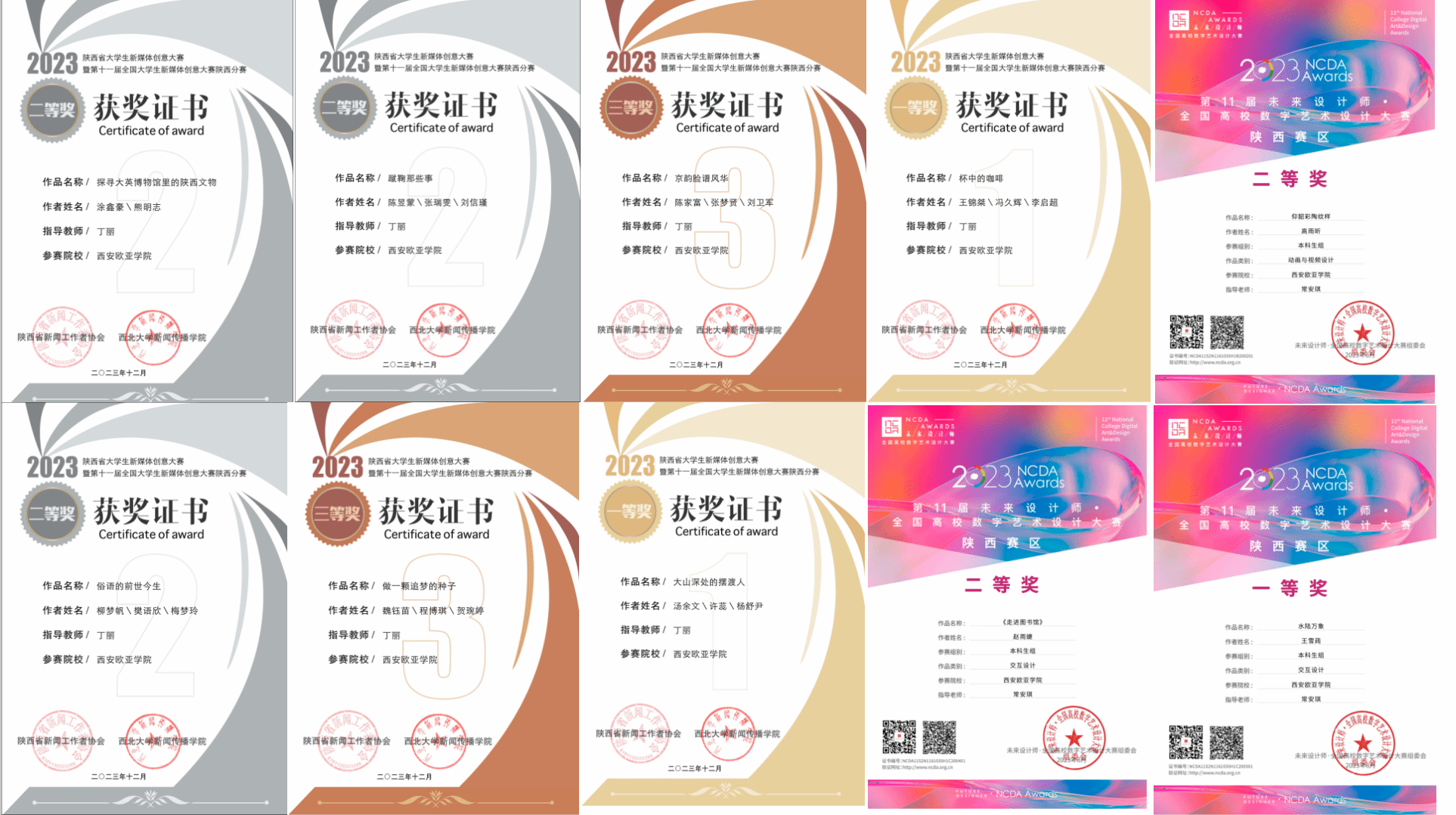 (图十三)学生们获得的部分证书