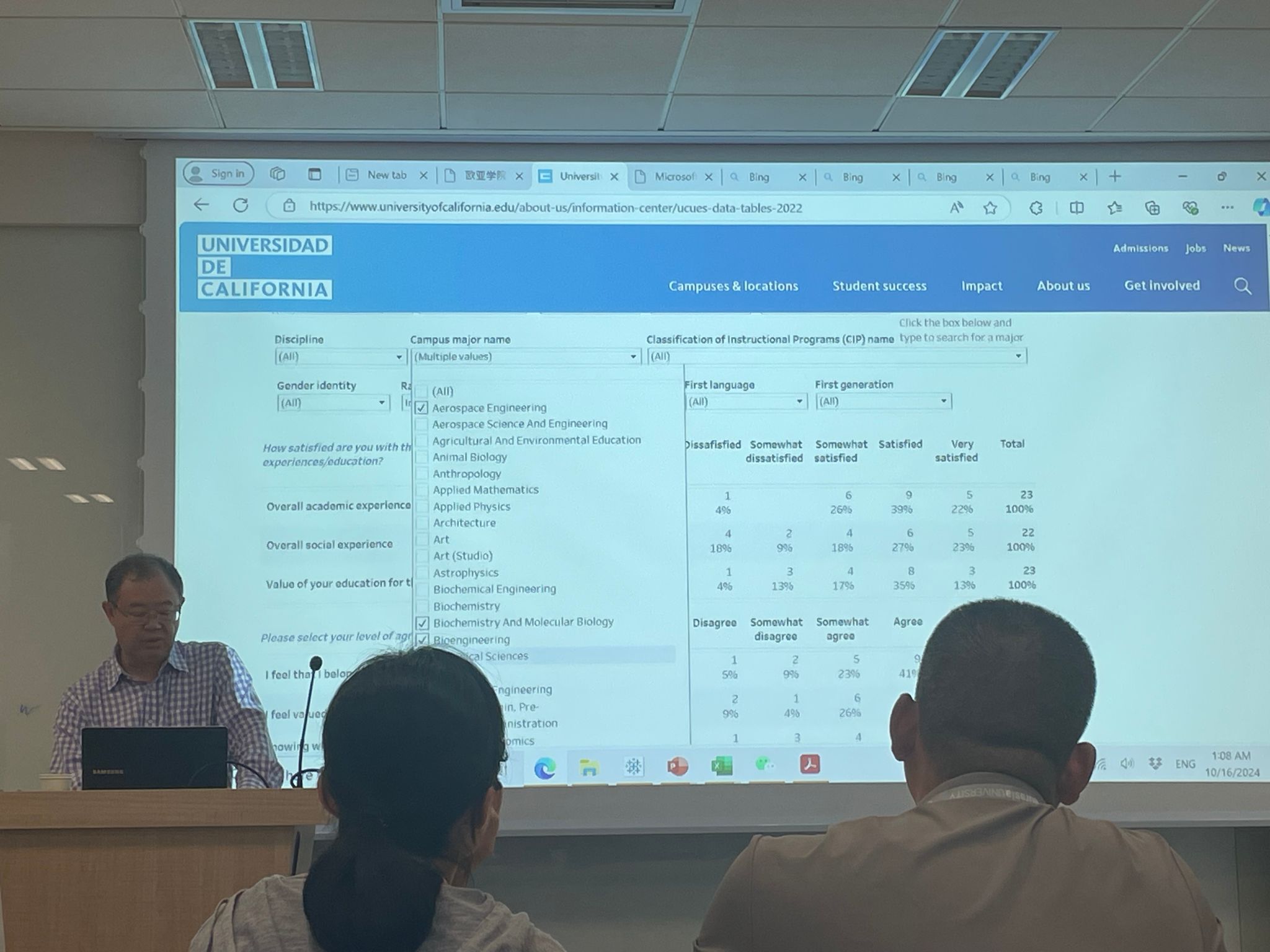 讲座伊始,常博士首先抛出了一个引人深思的问题:“什么是本科教育质量?”。随后,常老师结合自己的成长经历、在加州大学多年的工作经验,以及在国内一流大学进行教学评估的观察,深入剖析了美国顶尖大学本科生的学习行为与特点。他指出,本科教育质量内涵取决于高品质的教育经历,包括综合素质、创新能力、专业技能等多个领域的经历。
