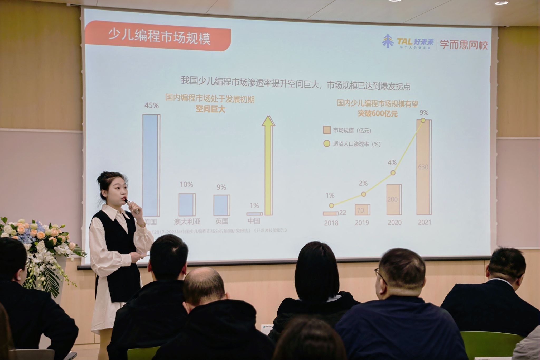 北京学而思教育科技有限公司西安分公司岗前培训负责人雷丹阳讲解了新形势下的少儿编程赛道,分享了数字化教育背景下学而思教育科技机构如何运营少儿编程,并指出了数字化教育下的人才发展需求。她说,编程行业已进入成熟期,教育数字化是“新赛道、新优势、突破口”,企业普遍面临数字化人才短缺,应加大招聘力度,优化教育培训体系,从而满足市场发展需求。