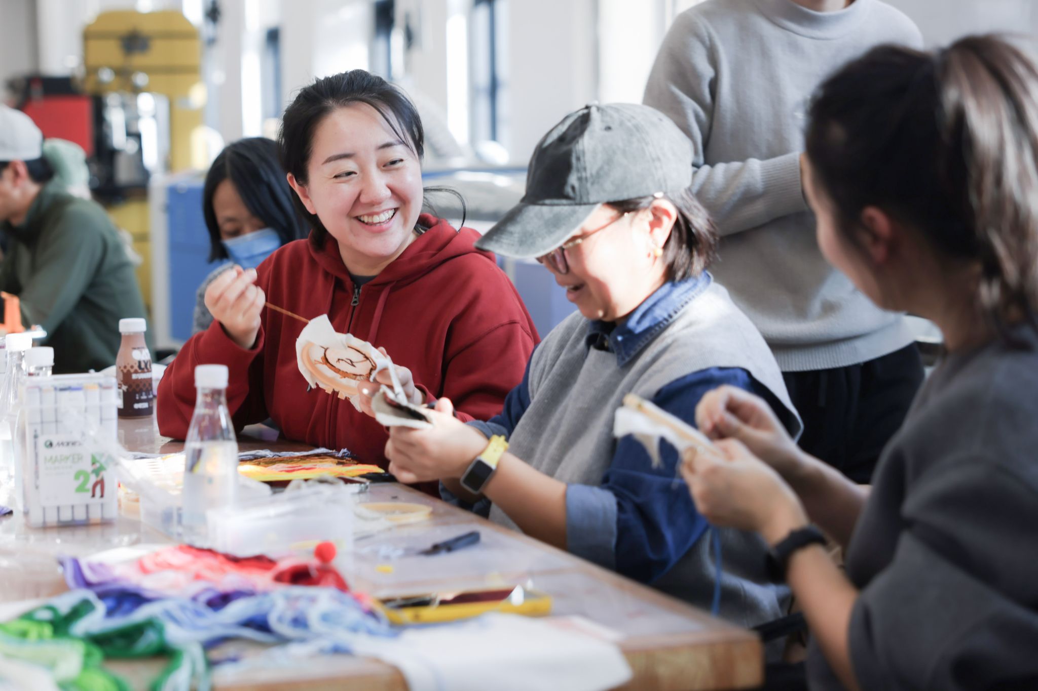 11月20日下午,王佳和高原老师还发起了一场环保共创的“旧布新生”循环工坊,LocalLand组织的“小布”骑友们和欧亚师生等十余人,拿起提前绘制了卡通动画形象、肉夹馍、小猫小狗等图案印花的旧布,全身心地投入到挂件、冰箱贴、布偶的制作中。两个多小时里,大家一针一线缝制,小心翼翼裁剪,共同感受从零开始的手工乐趣。“这是我最近最放松最专注的时候了。”一位参与者感慨道。