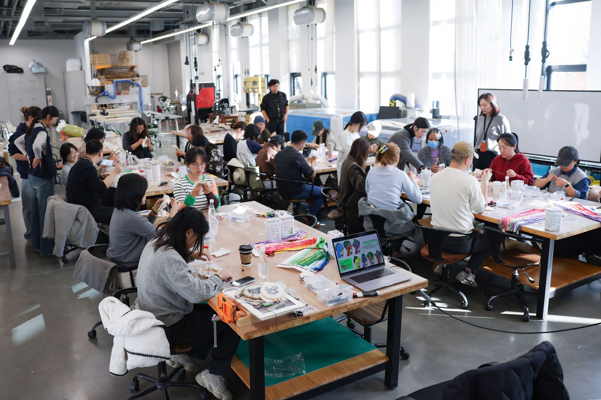 慢下来的时光里,温暖又治愈,摆脱了电子设备的束缚,时间不再是线性的流逝,而是在创造中重新定义。每个人用双手的工作为当天的记忆贡献了一块拼图,也沉浸式感受到融入真实生活的可持续环保理念。王佳希望,大家在看似平常的缝缝补补中,建立起人与人之间可持续生长的关系、情绪和情感的连接。