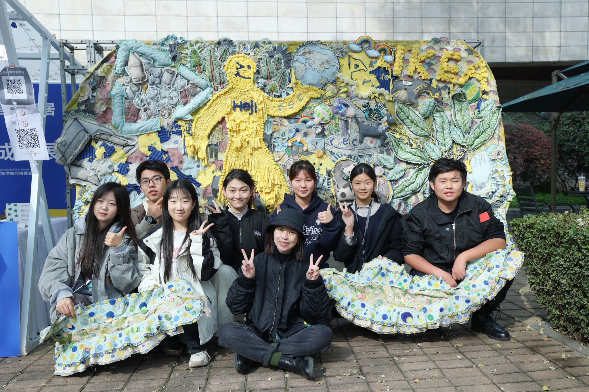 这次可持续生活节市集上,欧亚艾德艺术设计学院7名大一新生打造的一面2米长的废旧布料艺术装置惊艳亮相,受到媒体关注,还上了微博热搜。