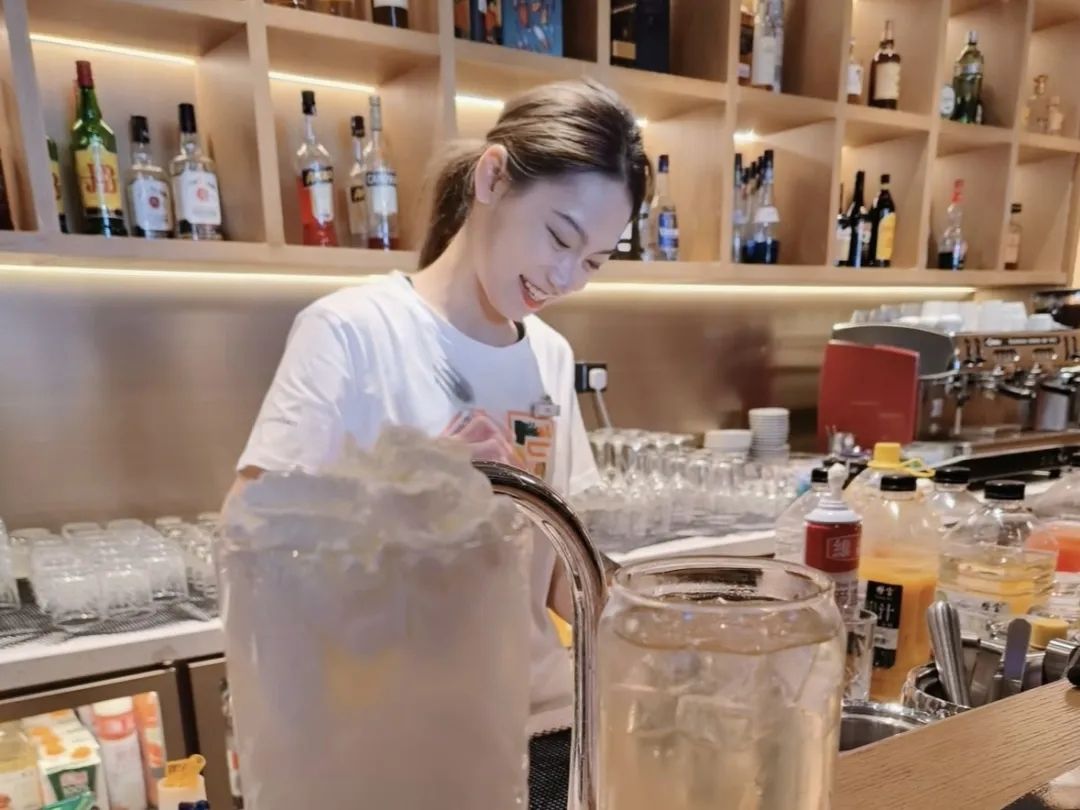 “我的工作与传统的实习不太一样,在度假村里我主要负责吧台的调酒,是G.O团队中的调酒实习生。”(G.O,即Gentle Organizer,意为“亲善的组织者/友善的东道主”,是Club Med对员工团队的称谓,更是品牌精神的体现)在餐饮服务岗位,朱玲一切从零开始,学习酒的品类、来源、味道、搭配、摇酒方式……起初她不熟悉调酒的配料,店长便将配料单贴在吧台侧面。