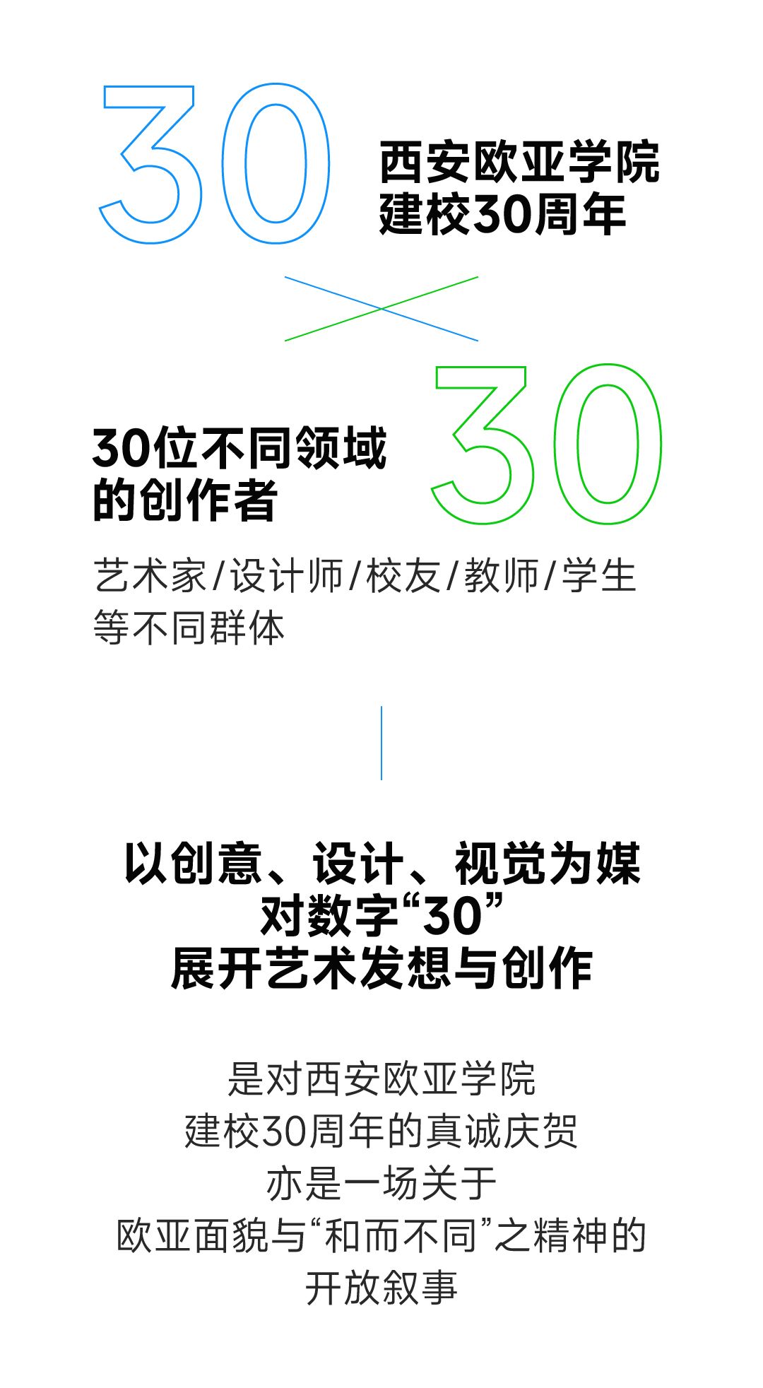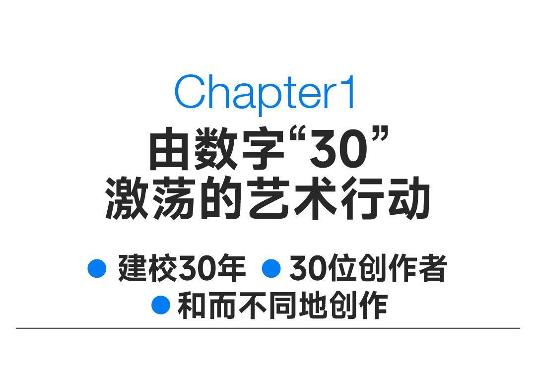 在这些维度的碰撞下、在建校三十周年的重要契机上,bevictor伟德国际1946官网秉持“和而不同”的校训精神,开启“30×30”艺术创作行动,希冀通过联结不同的创意领域、群体与技术,实现对“30”全新的创作,让意义走向公众,完成共同的作品。