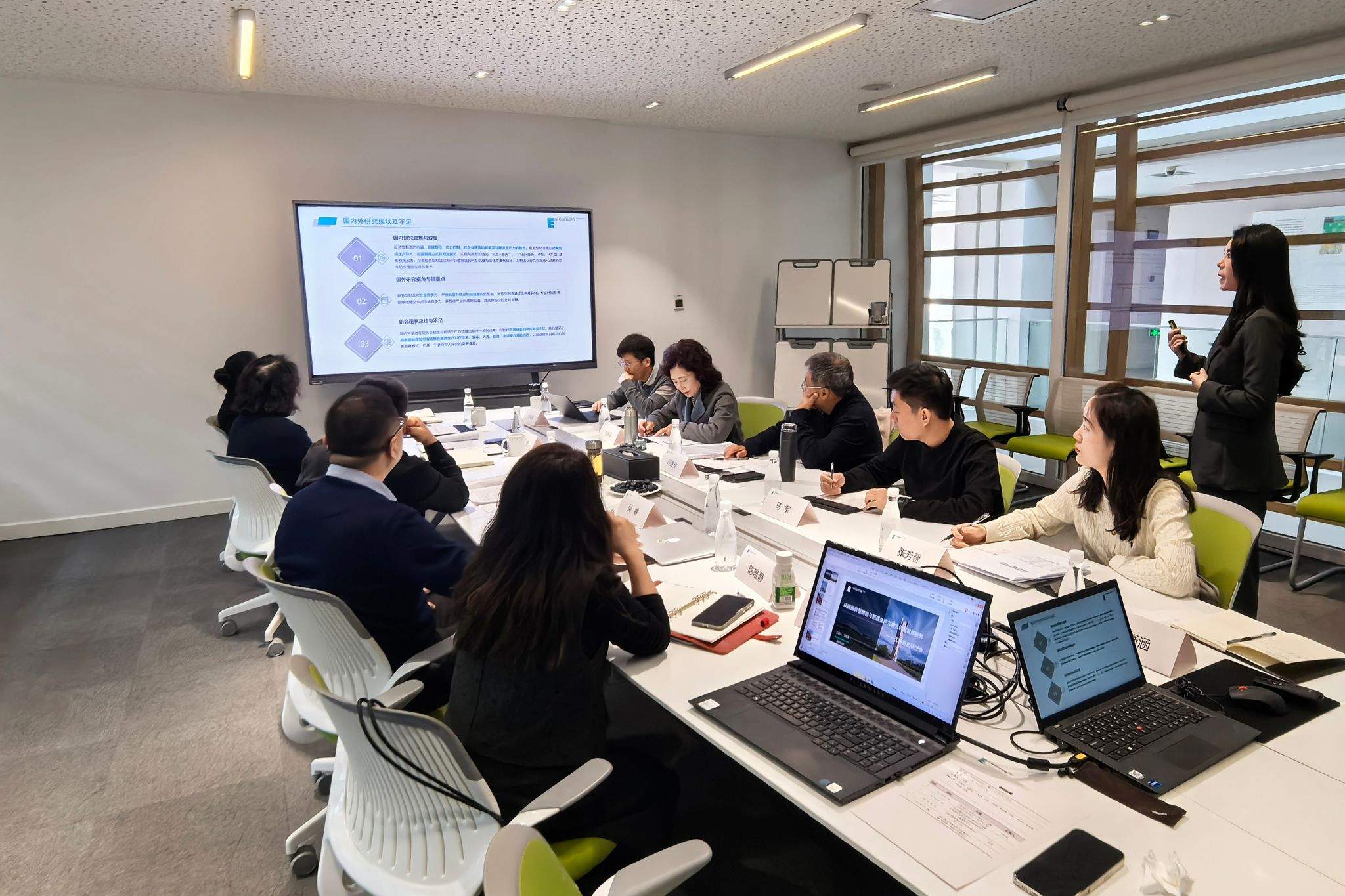 研讨会上,与会专家对去年立项的西部发展研究课题进行开题研讨,确保课题高质量完成。该课题聚焦陕西服务型制造与新智生产力融合创新发展,团队前期已做大量准备工作。课题组通过对国内外研究现状的调研发现,虽在服务型制造与新智生产力研究方面已有一定成果,但二者融合研究尚显不足。基于此,课题组提出剖析内在联系、明晰转型状况、揭示企业规律、提供政策建议等研究目标,并规划相应的机制研究、现状调研、案例分析、政策研究等方面研究内容,同时明确研究的创新点及技术路线。