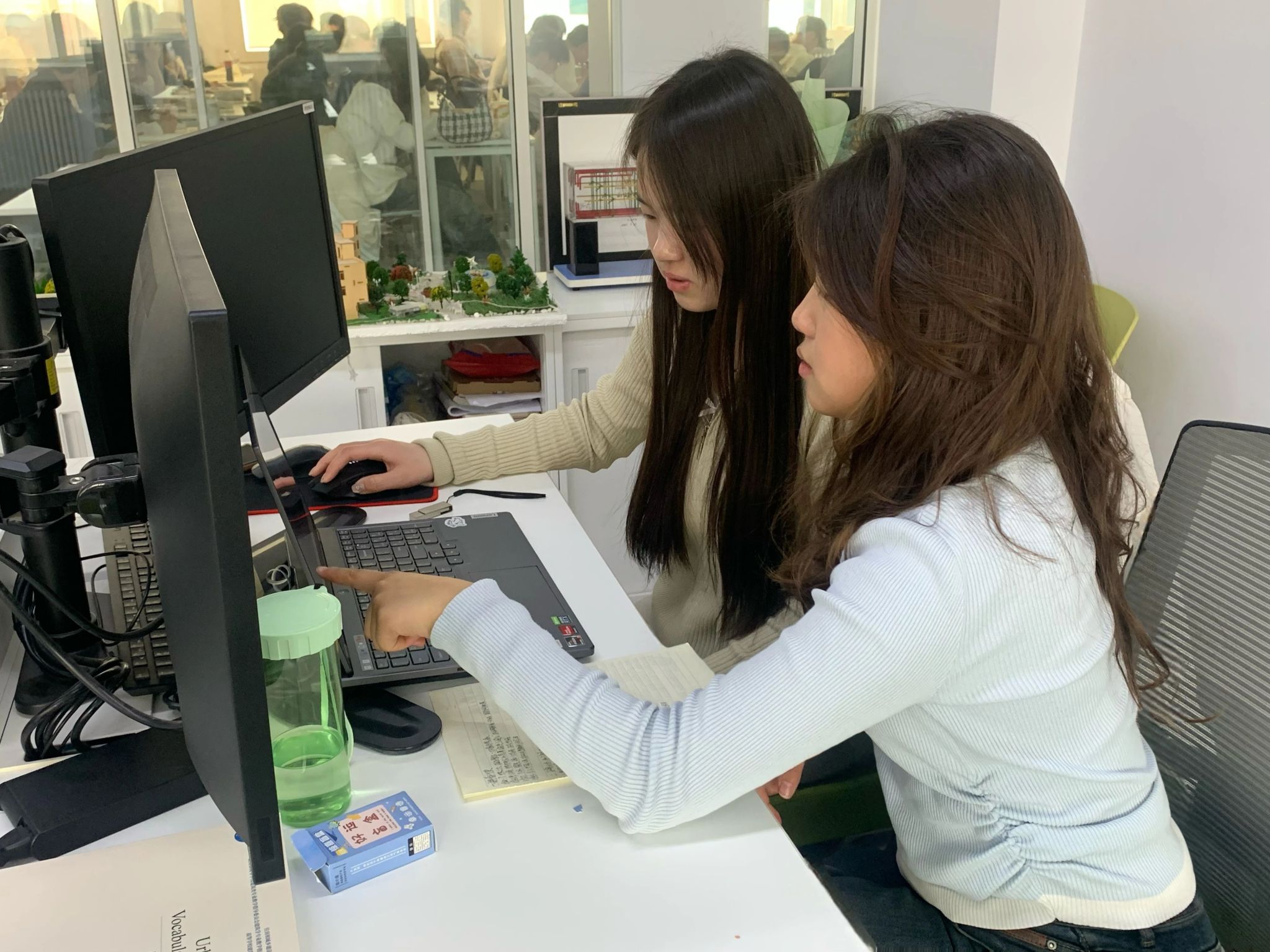 在一次为工作室申请“优秀学术科技团队”的经历中,我们越发有默契。我负责收集近三年学院获得的各类奖项,子怡则从旁协助我将其整理为书面材料。在解决困难时,我们也能够耐心倾听并尊重对方的想法,互相信任,彼此欣赏。