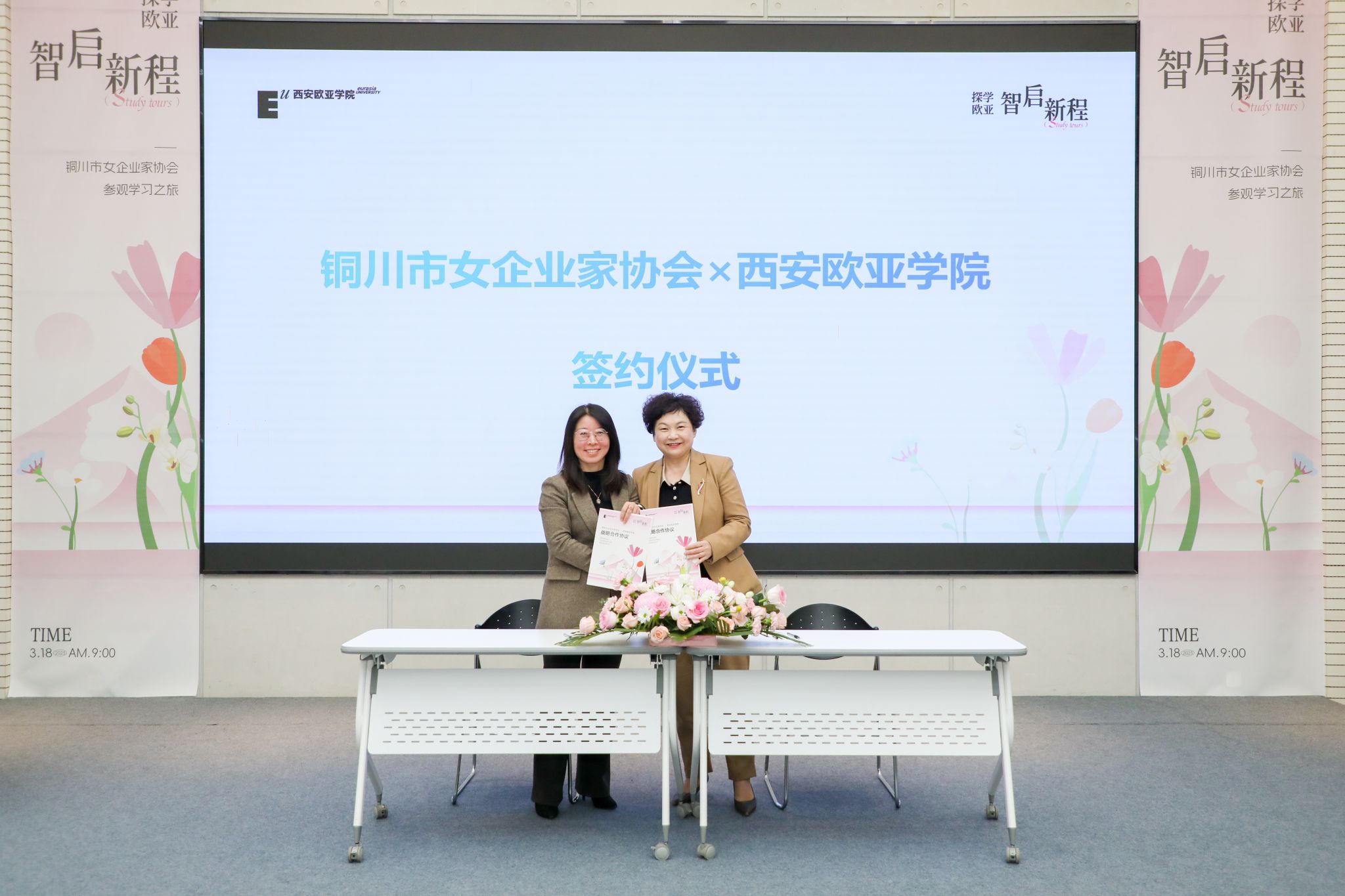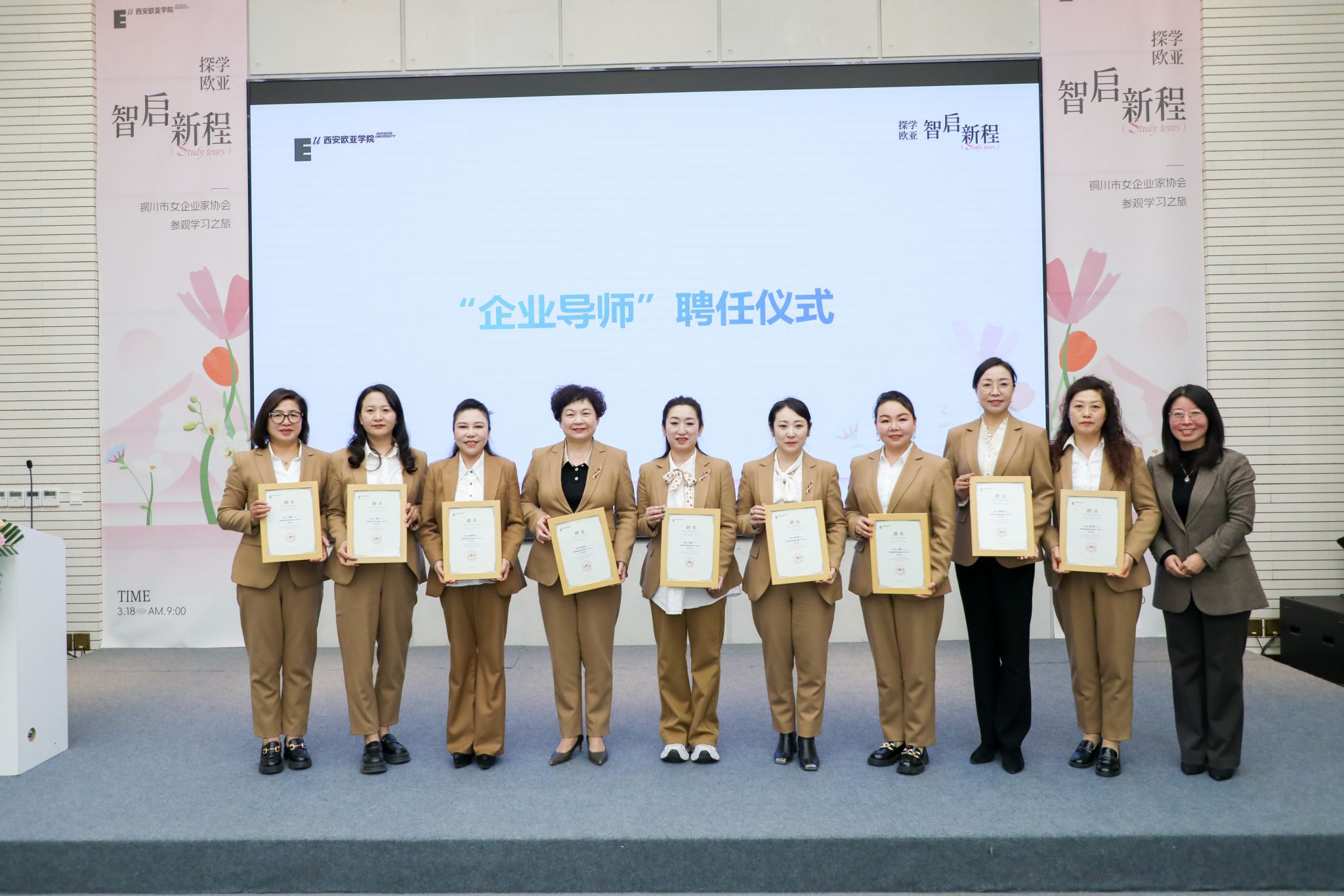 欧亚学院为深化实践育人,积极鼓励有实战经验的企业家们走进课堂,为学生们分享自己的创业与人生故事。这次签约会上特聘请胡玉芬、徐欣、黄丽琴、李小倩、杨静、文静、汤佳、李书芬、陈晓霞9位女企业家担任bevictor伟德国际1946官网“企业导师”,为学生们成长路上引航指路,为教育事业发展赋能。