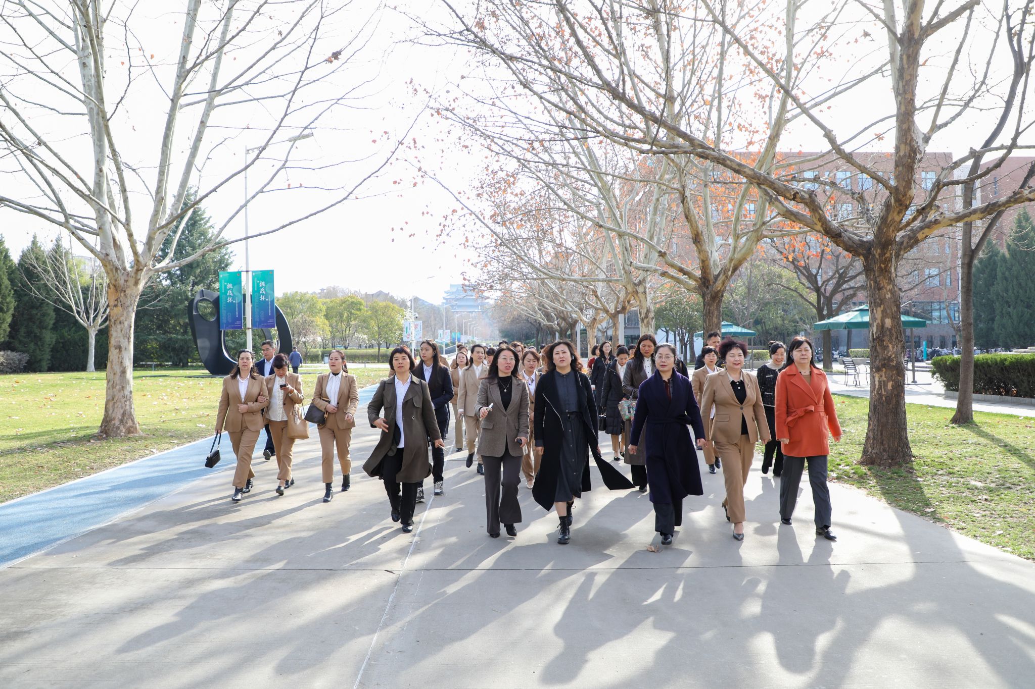 我校副校长张乐芳、职业发展与企业合作部部长王丽霞带领铜川市妇联副主席何冬娥及女企业家们先后参观学校行政楼、艾德艺术设计学院、文化传媒学院、南区客厅、虹桥碎石广场、人文教育学院教学楼等。参观过程中,张校长从学校建筑理念、育人模式、校园文化、社会服务等方面进行了详细的介绍。张副校长说:“欧亚注重培养重品格、会思考、善沟通,具有社会责任、创新精神、理论素养和较强实践能力的高素质应用型人才,主张学生按照自己本来的样子的生长。”