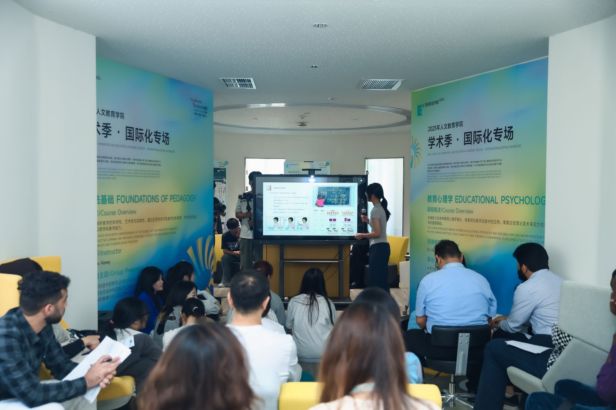 此外,国际班的学生依托英语核心课程《教育心理学》和《教育学基础》展开针对:多元智能(Multiple Intelligences)、认知发展(Cognitive Development)、行为主义(Behaviorism)、与生成式AI对话中的学习(Learning in Conversation with Generative AI)、沉浸式语言与文化(Immersive Language and Culture)、影响者主导的教育(Influencer-led Education)等相关主题的研究和展示。