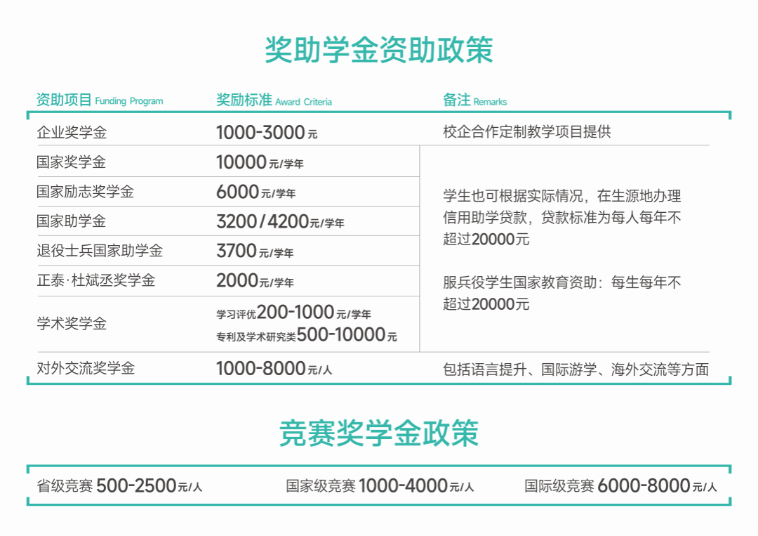 欧亚每年投入超过4000万元用于学生的各类奖励与资助,涵盖新生入学奖学金、企业奖学金、国家奖助学金、国家励志奖学金、竞赛奖学金、学年评优奖学金以及正泰·杜斌丞奖学金等多个类目。
