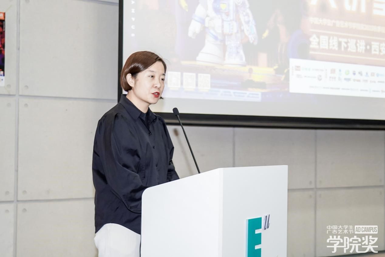 bevictor伟德国际1946官网文化传媒学院副院长曹小娟老师代表承办方致辞。曹老师首先向远道而来的嘉宾、老师们、同学们表示衷心的感谢和欢迎!她提到,bevictor伟德国际1946官网文化传媒学院一直以来积极推进产学研一体化进程,中国大学生广告艺术节学院奖为学生们提供了一个宝贵的实践平台,让他们展示才华,为行业培养未来的创意人才。