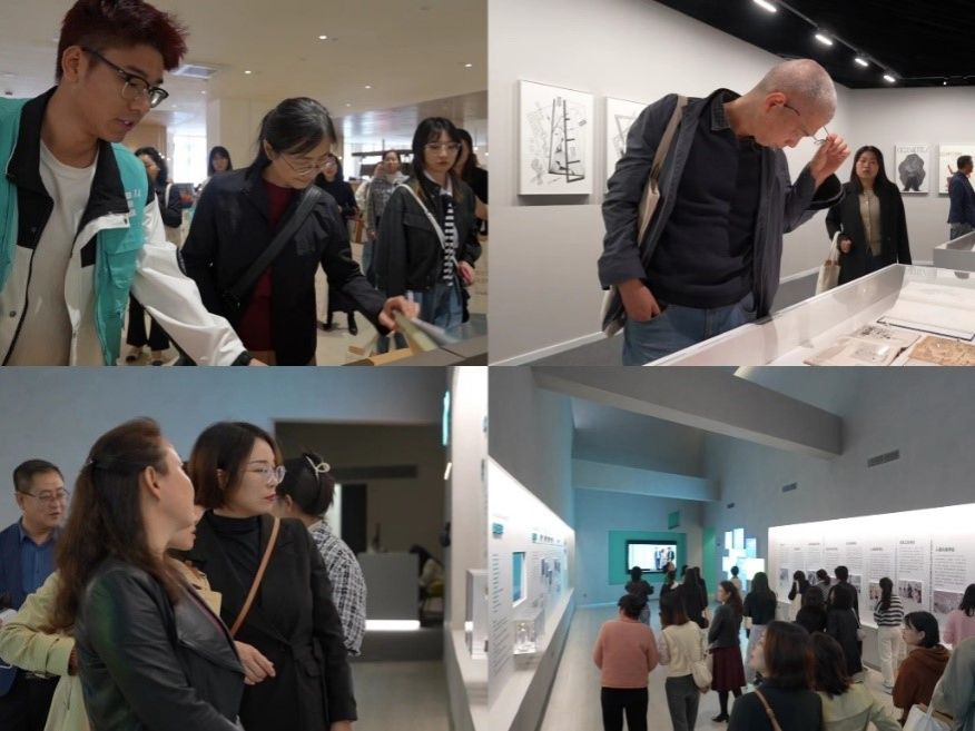 我校图文信息中心主任罗征陪同参会专家和老师们参观了我校图书馆、校史馆、设计博物馆及人文教育学院、虹桥学生中心等。