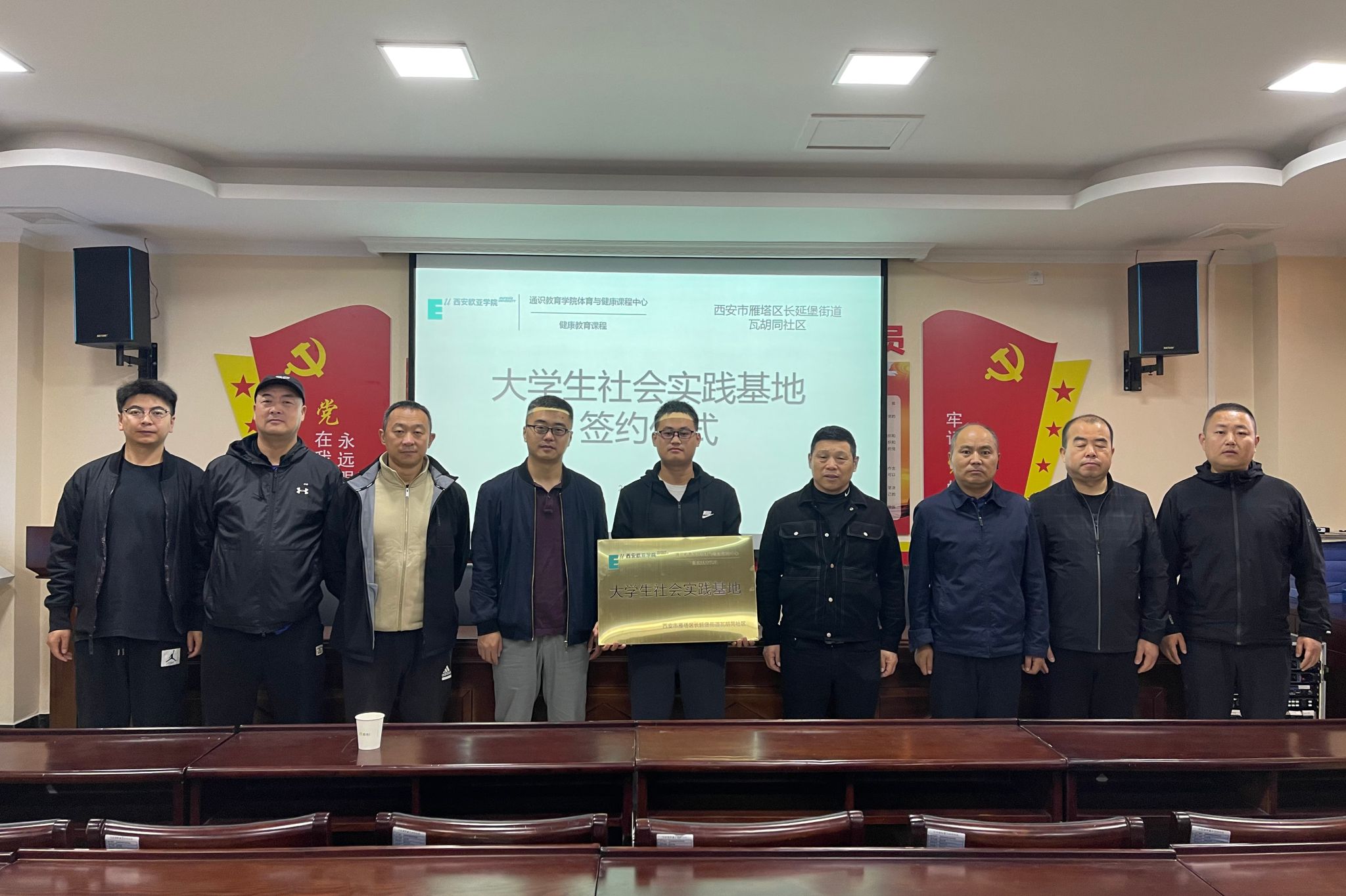2023年10月25日,我校通识教育学院体育与健康课程中心与西安市雁塔区瓦胡同社区举行校地合作座谈会,双方就共建大学生社会实践基地签署合作协议并举行挂牌仪式。瓦胡同社区党委书记崔小文、党委副书记崔延安、委员王宏伟、王盼,我校通识教育学院院长助理段永刚、体育与健康课程中心副主任高鹏等出席签约仪式。