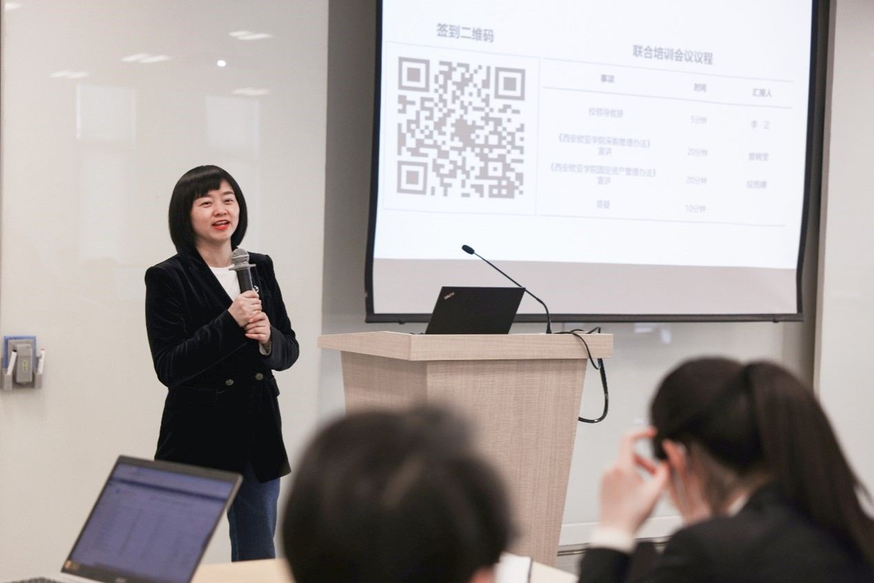 会议伊始,采购管理中心副主任首先对于本次会议的目的、内容作了简要介绍。希望通过本次联合宣讲明确业务部门从提出采购需求,到如何实施采购,再到如何验收入库移交使用,最后直至结算付款全链条的业务流程,打通采购管理、资产管理、财务管理三方面的具体要求和作业标准,解决大家跨部门沟通过程中的痛难点,提升大家的整体工作效率。然后也对各部门老师在年终繁忙之际能拨冗前来参与宣讲会表达了由衷感谢,感谢大家的支持与付出,这是采购和财务工作未来能够更加稳定向前推进的重要动力。