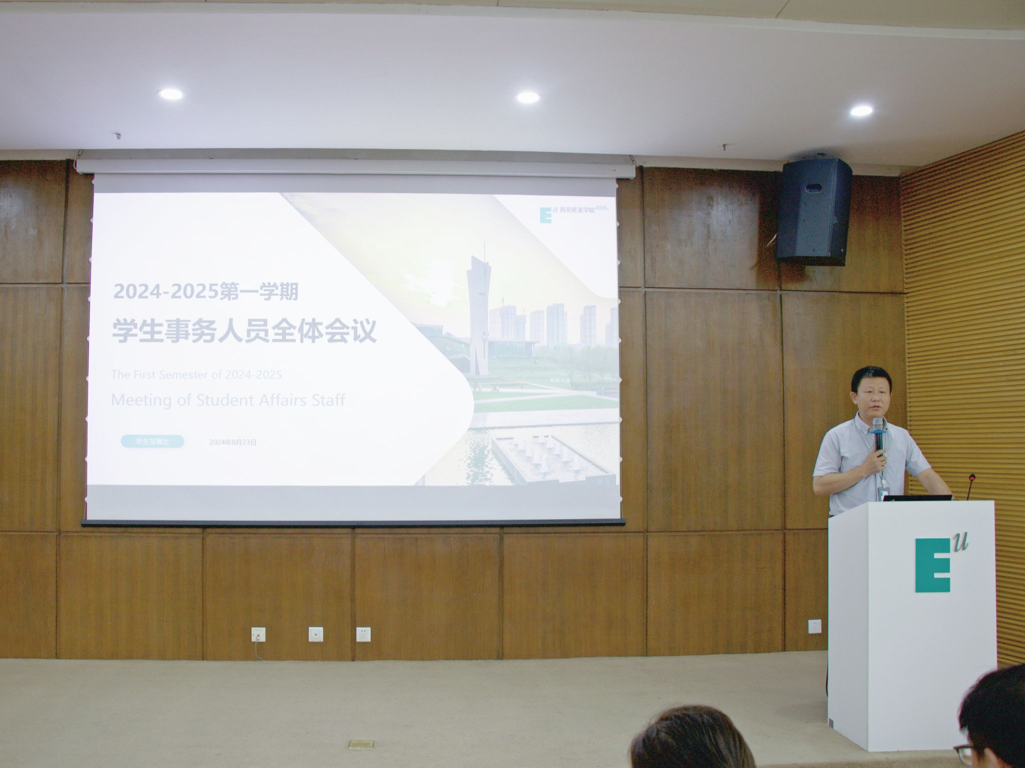 在学校“以雇主为导向,以学生为中心”的战略引领下,为明确新学期工作方向与重点任务,优化管理机制,提升服务效能,确保新学期学生事务各项工作安全、有序、高效推进,全面助力学生发展。2024年8月23日上午,学生发展处在图书馆学术报告厅召开新学期第一次工作会议。学生发展处、分院学生事务中心全体人员参加会议。