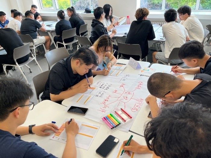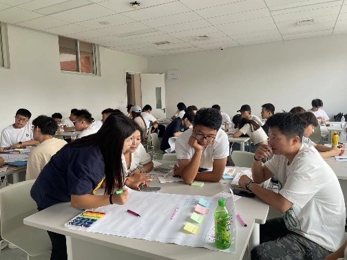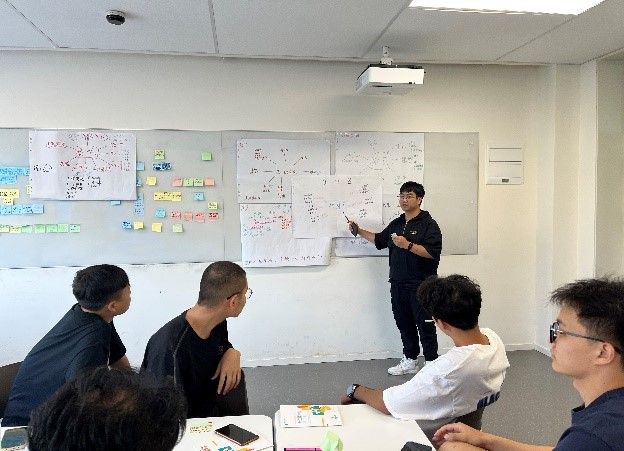 和利时公司&一鸿公司介绍了公司文化和需求后,学生组队针对具体挑战展开研究。他们不仅要评估技术可行性,还得考虑市场需求和用户体验,这种全方位的视角使他们能像雇主一样思考,并提出切实可行的创意方案。