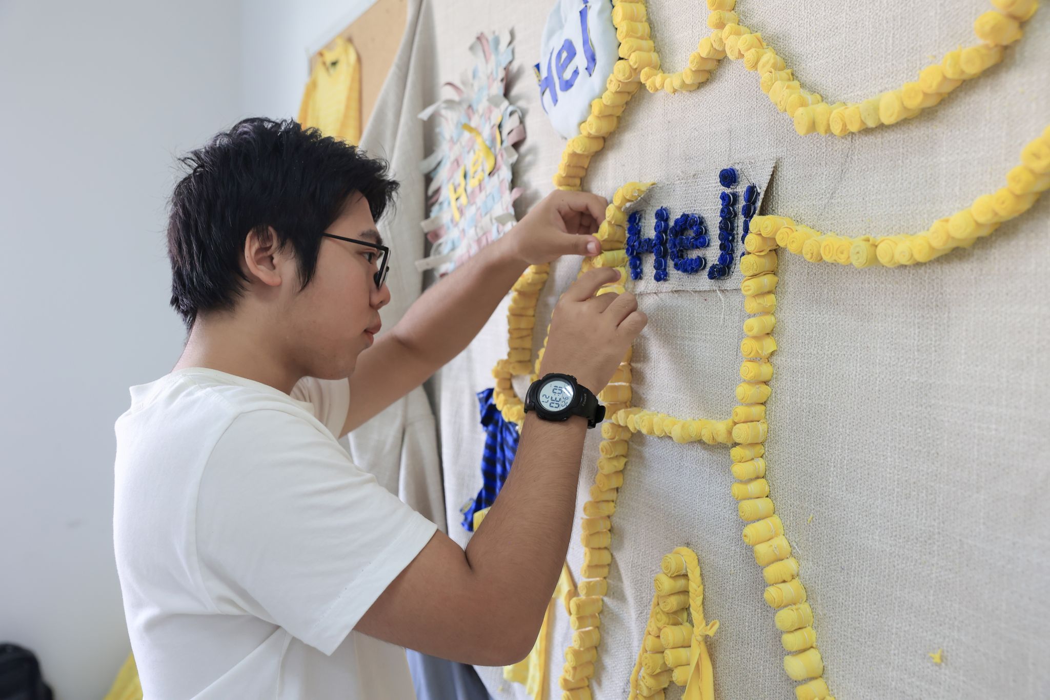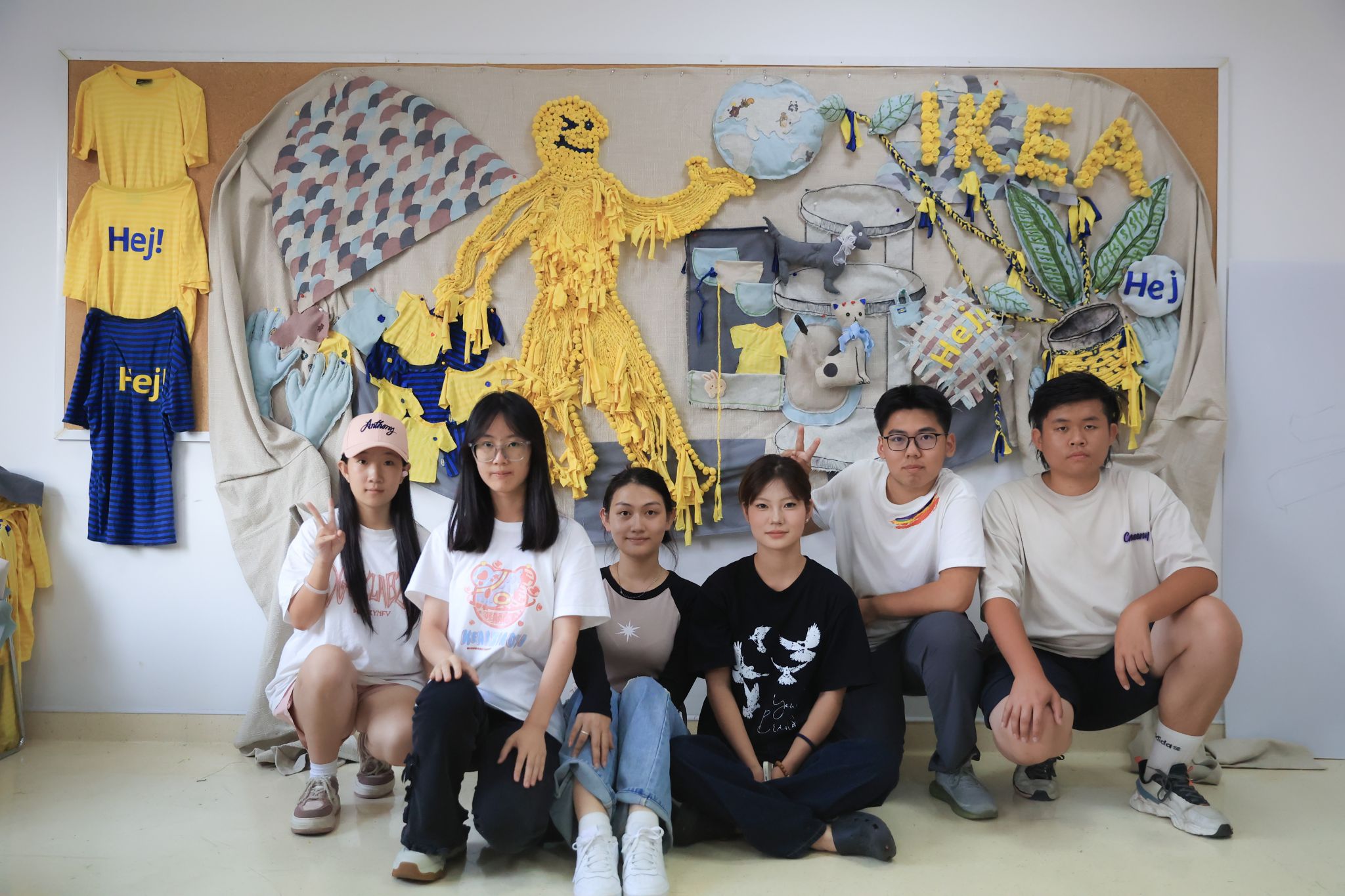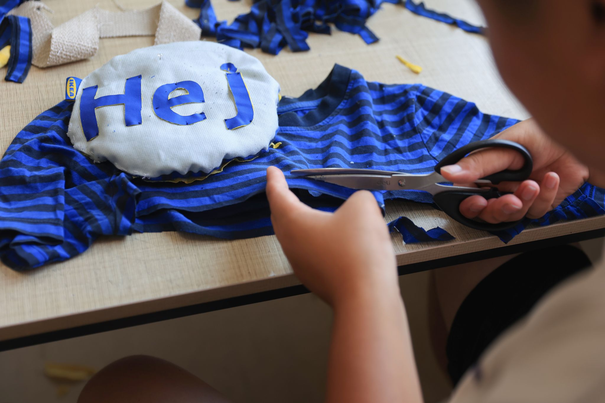 瑞典家居品牌宜家是艾德艺术设计学院重要的产学合作单位之一,此次课程也与宜家联手,为学生注入了新鲜的行业视角,也提供实际的资源支持。宜家通过捐赠废旧的员工制服,让这些原本即将退役的布料成为了学生们手中的设计素材。这些废旧制服进行学生的重新构思、剪裁与设计,转化为独特的装饰元素,赋予了旧物新生命。这样的合作不仅让学生有机会接触到真实世界的可持续设计理念,也促使学生在实践中思考环保与再利用的重要性。