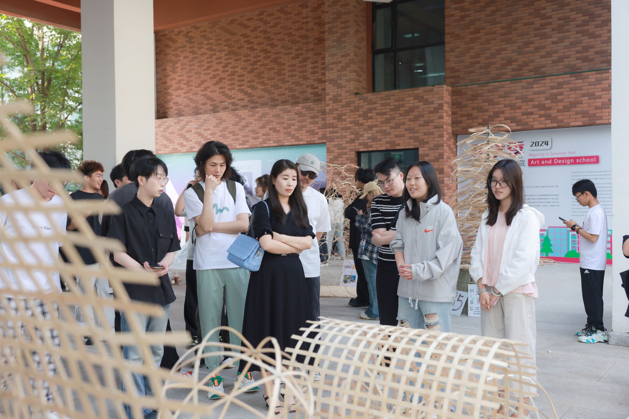 随着课程的推进,课程迎来成果展示的高潮。一年级的师生们齐聚教学楼外的开阔空间,共同庆祝“驿站”主题项目的成果。每一件作品都是对“驿站”概念的新颖诠释,展现了学生们对设计美学的探索与尝试。