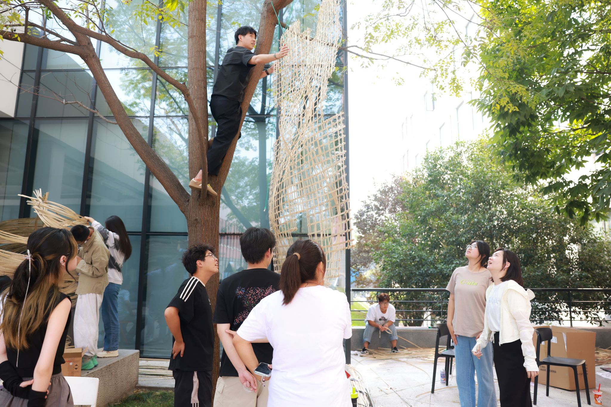 户外搭建阶段学生将设计概念转化为实体空间,借助工具的使用、给定材料的分析、结构的设计实现,完成了创意性的空间搭建。课程也鼓励学生展现领导力、执行力以及沟通协作,不仅锻炼学生的动手能力,也提升团队协作技能。