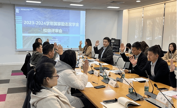 根据《陕西省教育厅办公室关于做好2024年高等学校本专科生奖助学金评审汇总工作的通知》(陕教办[2024]29号)《关于做好2023-2024学年国家励志奖学金评审工作的通知》(西欧学字[2024]29号)文件精神,2024年11月25日,我校在行政楼一楼东会议室召开了2023-2024学年国家励志奖学金校级评审工作会议。会议由学生发展处副处长张成主持,学校全体评审委员会成员参加了会议,会议包括2023-2024学年国家励志奖学金评审工作汇报、二级学院汇报国家励志奖学金评审工作情况、学校评审委员会对465名国家励志奖学金候选人上报资格审议、励志奖学金候选人表决四个环节。