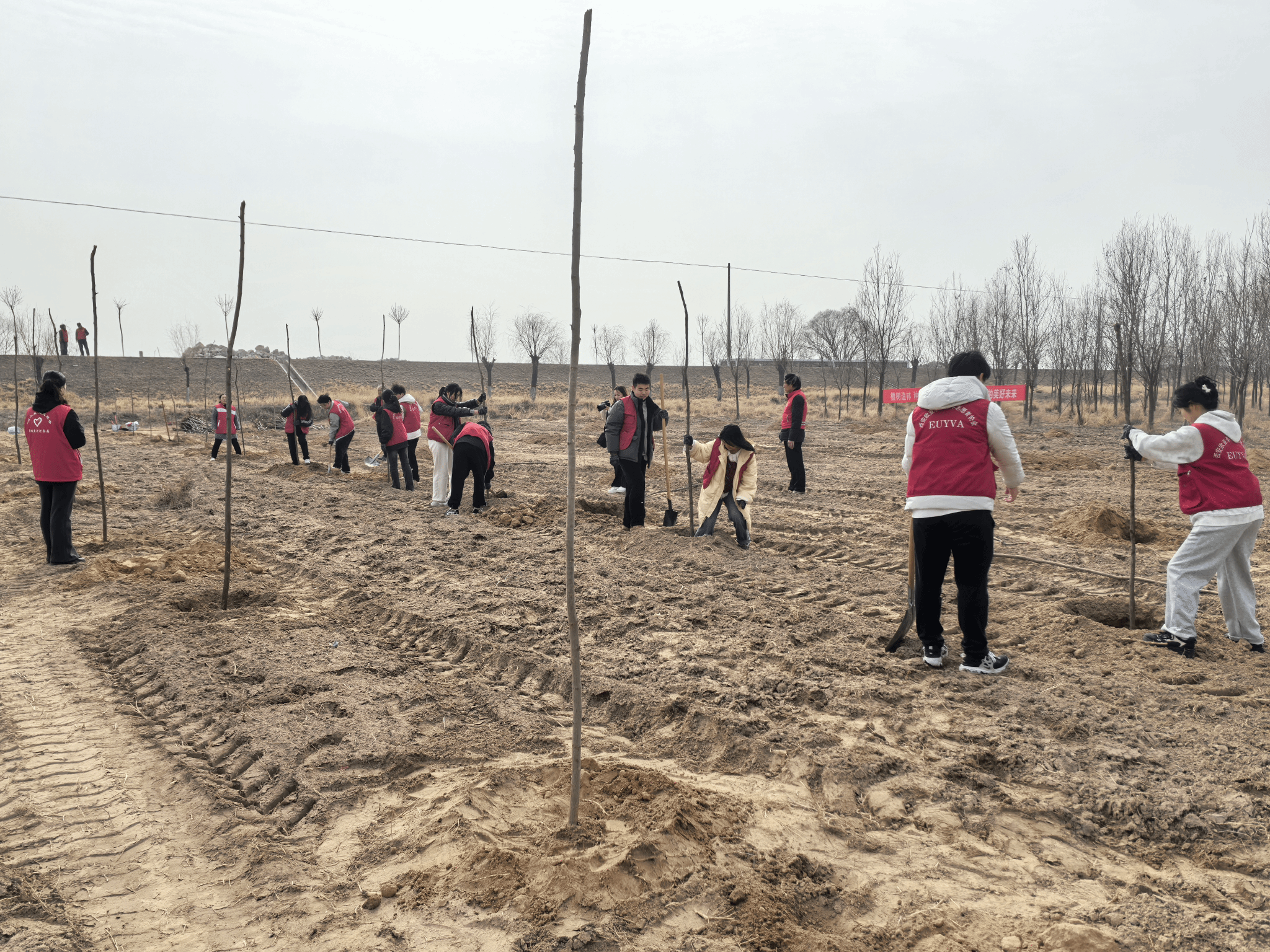 活动现场,林业技术人员全程指导,从树坑深度到土壤回填细节,志愿者们认真学习,将环保理念融入实践。欧亚学子以小组形式配合,有的负责扶正树苗,有的填土夯实,团队协作间展现出的高效与默契,成为春日里最动人的风景。活动共栽种杨树、侧柏等苗木千余株,为澽水河畔增添了一片生机勃勃的“青年林”。
