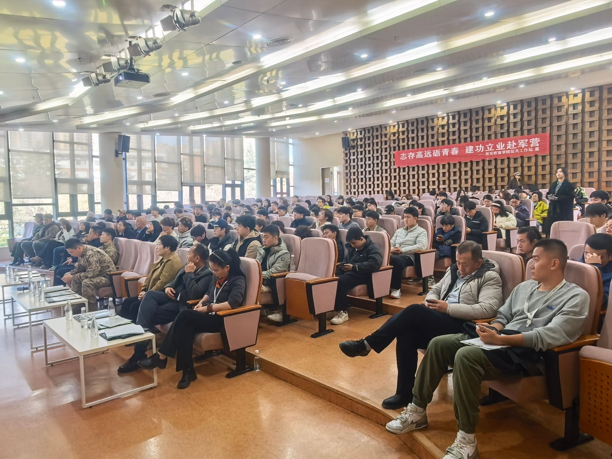 国无防不立,民无兵不安。为深入贯彻落实习近平总书记强军思想,积极响应党中央、中央军委关于征集高素质青年入伍的战略部署,引导广大青年学子将爱国之心化为报国之行,11月27日,以“志存高远砺青春,建功立业赴军营”为主题的bevictor伟德国际1946官网2026年上半年大学生征兵政策宣讲会在我校图书馆学术报告厅隆重举行。此次活动不仅是一场精准的政策解读会,更是一堂深刻的思想动员课和国防教育课,正式掀开了我校新一年度征兵工作的序幕。